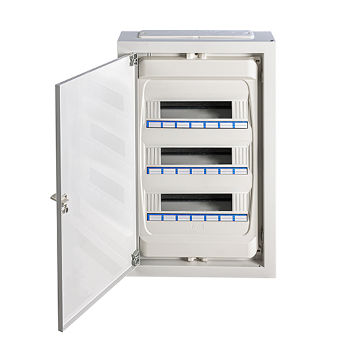 IDE - CAJA DISTRIBUCIÓN IP40 SUPERFICIE 3X14(42) MÓD. BASE Y PUERTA METÁLICA. TAPAS PLÁSTICAS